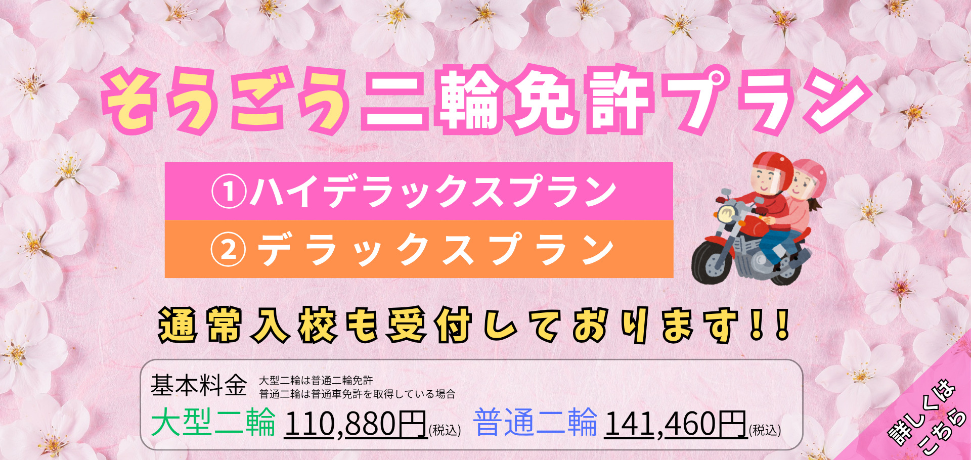 ご本人の技量やご都合等で変わってきますが、通常は平均2~3カ月でご卒業いただいています。なお、できるだけ早く免許を取得されたい方は、「スピードコース」「プレミアムコース」をお選びいただくと、よりスピーディーにご卒業いただけます。