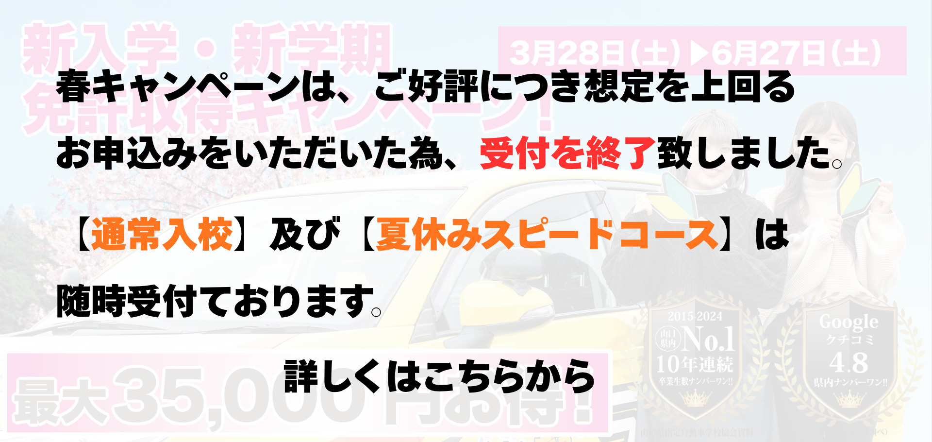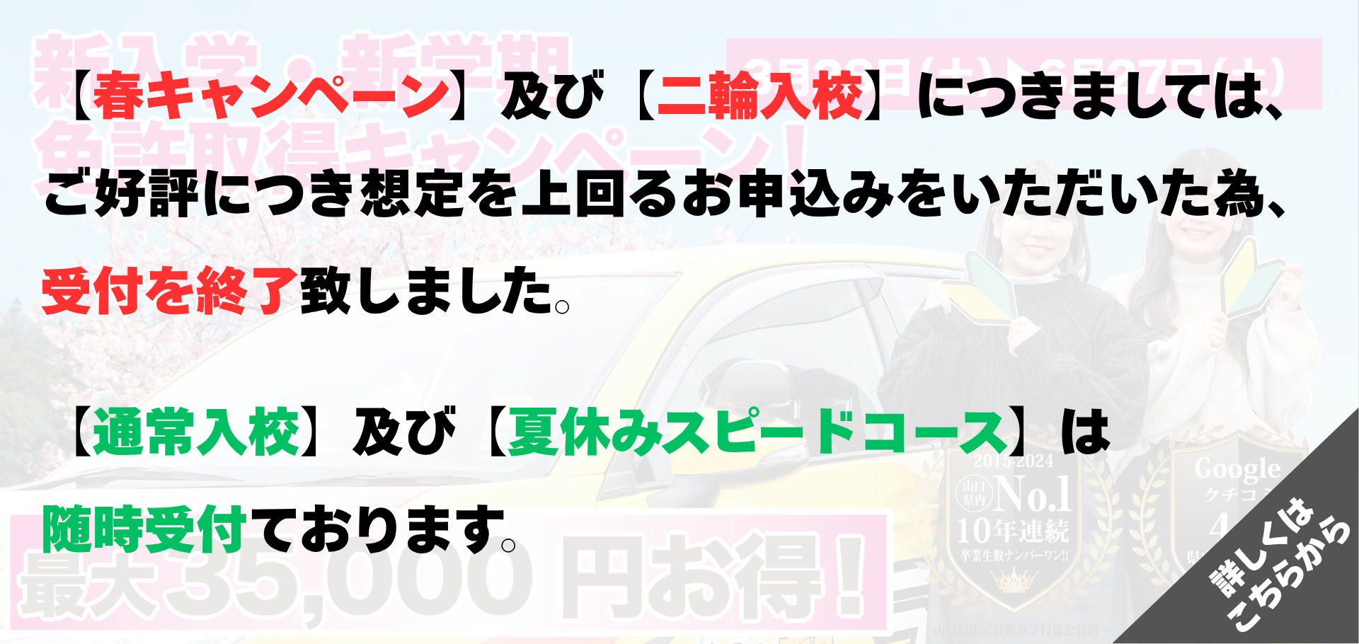 普通免許については18歳の誕生日の約2カ月前からご入校をお受けしています。なお、修了検定(仮免取得のための技能検定)及び仮免学科試験は18歳にならないと受検できません。