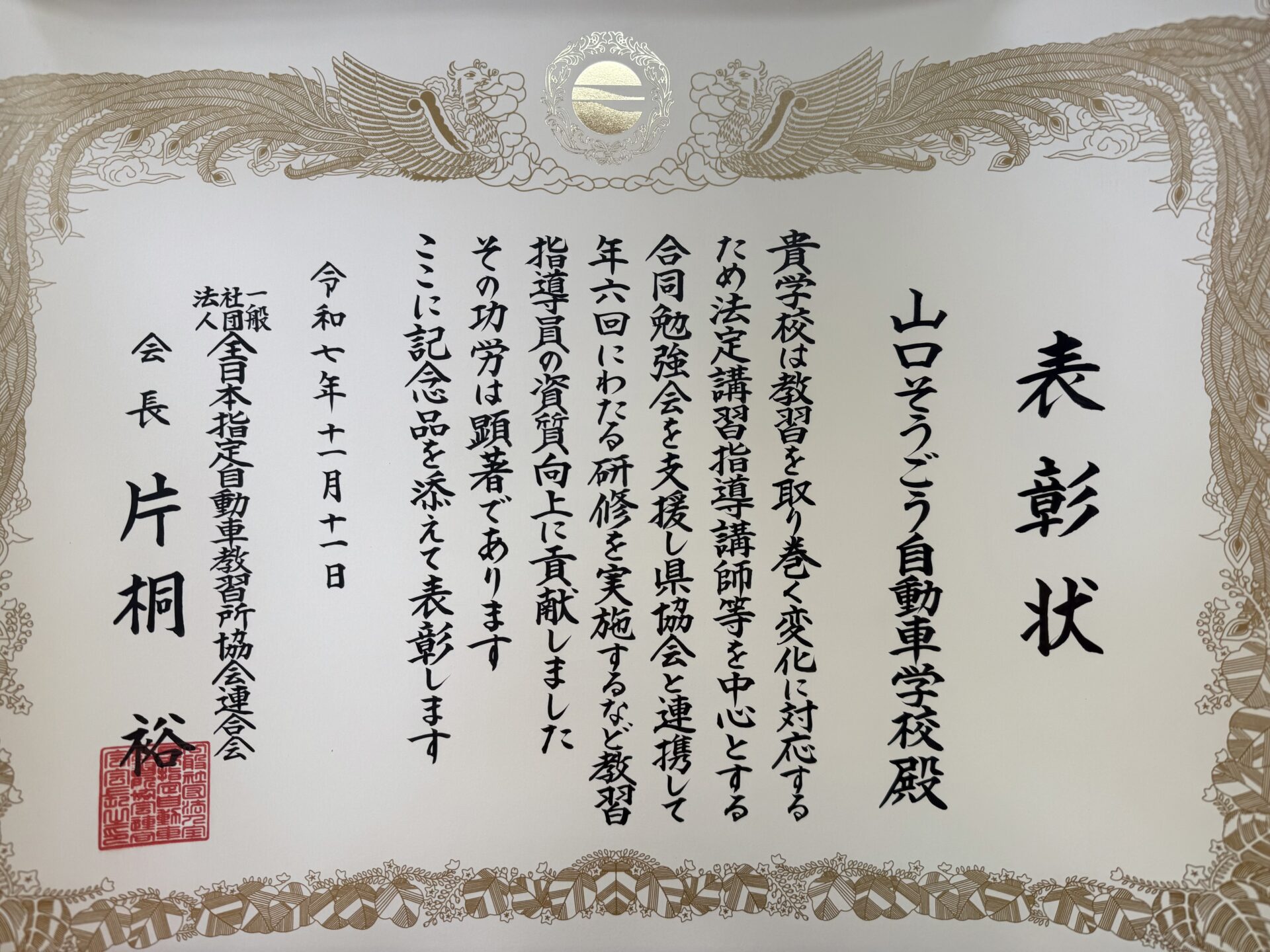 当校では、教習指導員が主体となり、日々の教習の質を高めるための勉強会を継続的に行っております。今回の受賞は、その取り組みが高く評価されたものです。